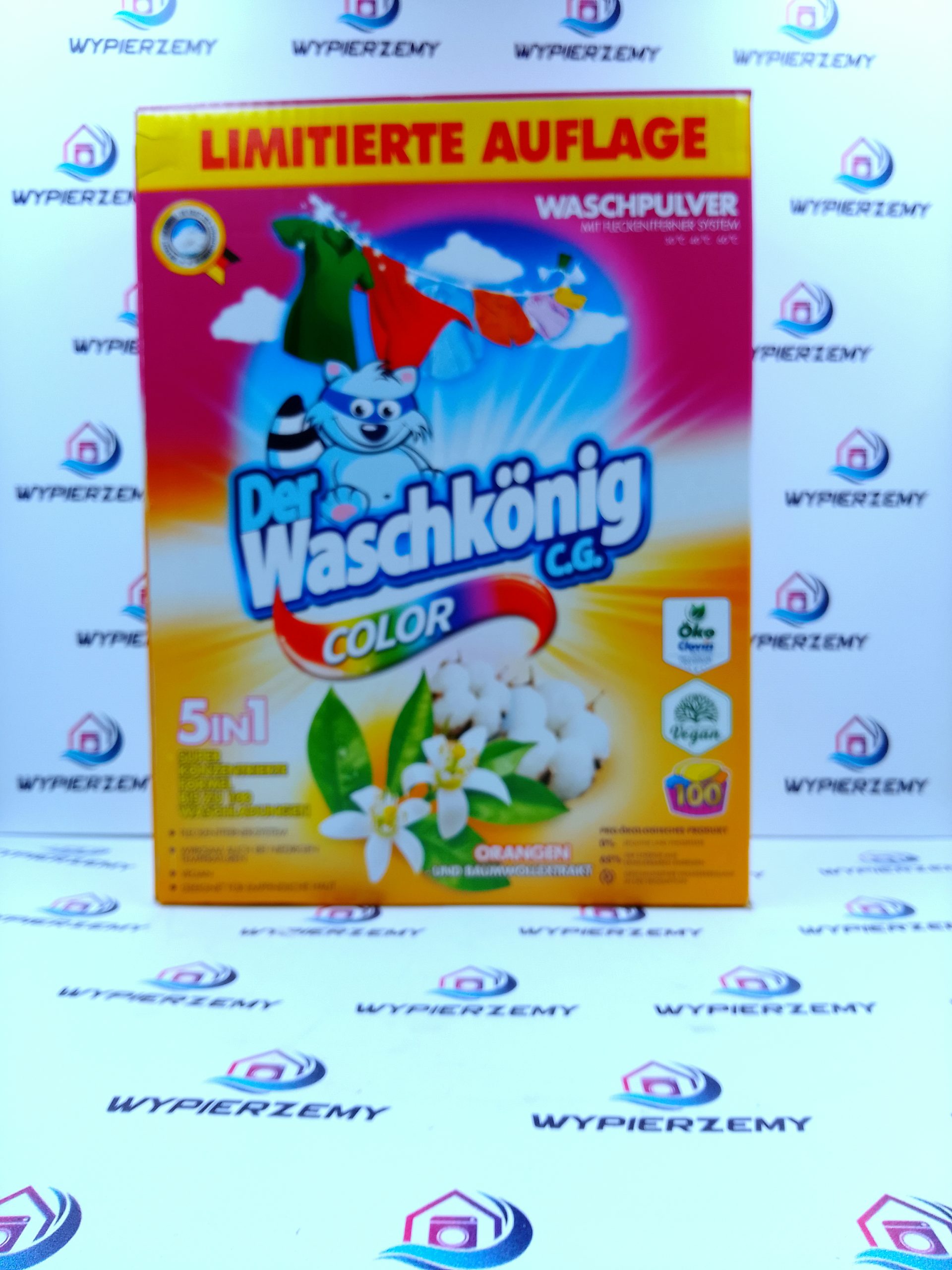 Der Waschkönig proszek do prania kolorów 6 kg z ekstraktem pomarańczy i bawełny oferuje silne odplamianie oraz intensywność barw. Produkt niemiecki dostępny w Polsce, który zapewnia 100 skutecznych prań w jednej paczce.