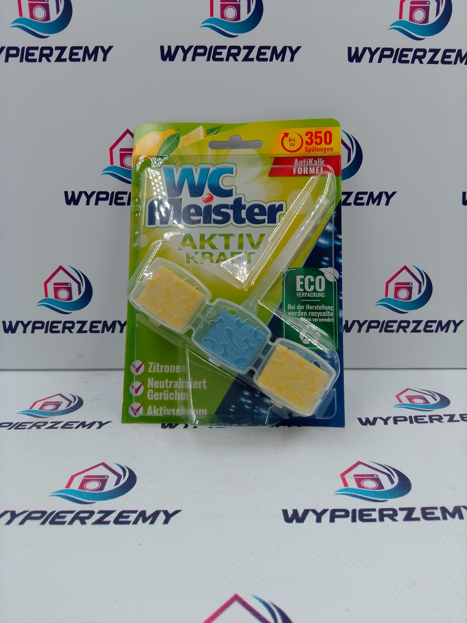 WC Meister Aktiv Kraft Zawieszka do WC Zapach Cytryna 45 g to niemiecki środek czystości, który usuwa kamień, odświeża i nadaje słodki aromat cytryny przy każdym spłukaniu.